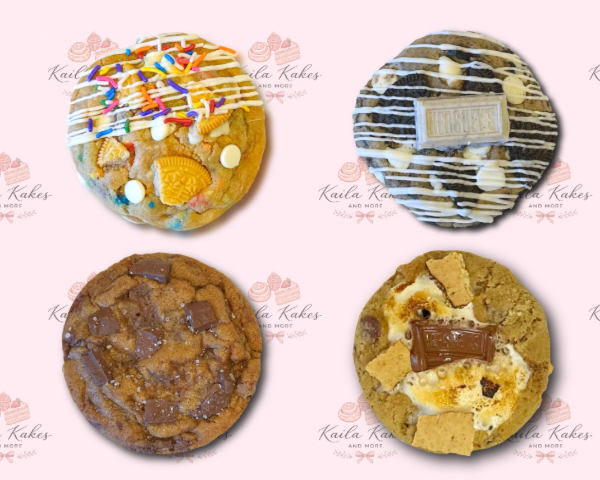 Each cookie is baked fresh, individually sealed for shipping, and delivered anywhere in the United States. Available in half-dozen, dozen, or two-dozen packs.