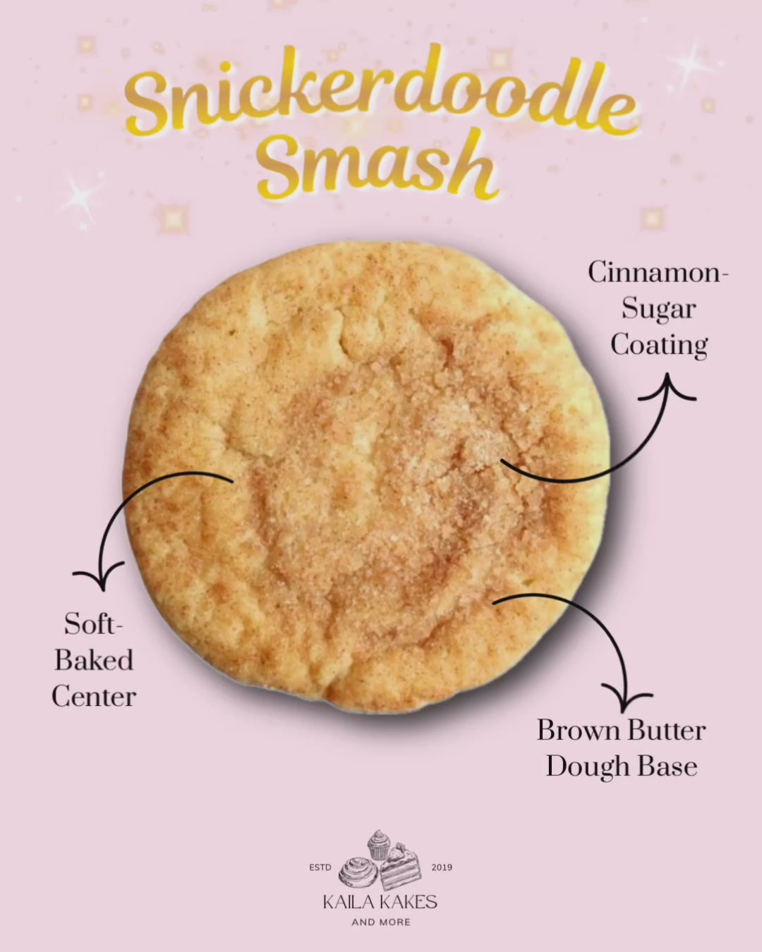 A buttery cinnamon-sugar cookie with that signature tang from cream of tartar. Soft, chewy, and coated in a sweet cinnamon finish.